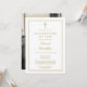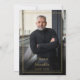 Um convite de funeral moderno e elegante com borda dourada para Celebração Cristã da Vida com uma foto no verso. Criado por Thisisnotme©