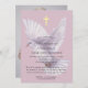 Uma bela celebração do convite à vida, que inclui uma pomba voadora com uma cruz de ouro num fundo de lavanda, no verso do convite há um modelo de fotografia onde você pode adicionar uma foto da pessoa que comemora e cria um belo guardião para os convidados para o tesouro para sempre. se você quiser este convite em qualquer outra cor então por favor entre em contato comigo janine através do meu botão de mensagem do zazzle store e será feliz em ajudar você.
