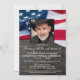 U.U.A.: Memorial Funeral Celebration Of Life Invitation. Esta celebração patriótica de convite à vida apresenta uma bandeira dos Estados Unidos da América sobre um fundo de madeira escura. Personalize esta bandeira americana celebrando o convite à vida com seus entes queridos foto, nome e datas, local do evento e qualquer informação adicional no verso. Este convite para o funeral de fotos da American Flag será um tesouro guardião. Perfeito para um funeral militar, serviço memorial veterano ou celebração militar da vida. Na Memória Militar Memorial, Bandeira Americana. COPYRIGHT © 2020 Judy Burrows, Black Dog Art - Todos Os Direitos Reservados. Celebração Do Convite À Bandeira Militar Americana