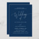 Roteiro de Caligrafia Azul do Marinho Moderno, Cartão de Convite à Celebração da Cerimônia de Casamento da Igreja.