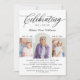 Moderno e elegante convite de Celebração da Vida com colagem de fotos. O design apresenta 3 fotos, tipografia e detalhes do serviço na frente. Personalize ainda mais com outra foto no verso.