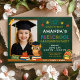 Celebre um grande marco com este encantador convite para a festa de formatura pré-escolar! Apresentando um design de quadro com estrelas coloridas, uma coruja sábia, livros e um boné de formatura, este convite captura a alegria do aprendizado precoce. Perfeito para um evento divertido com jogos, guloseimas e muito mais.