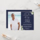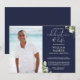 Elegante azul-marinho, moderna foto de convite de celebração de vida e lembrança de funeral com folhagem de jardim. Criado por Thisisnotme©
