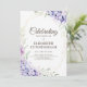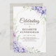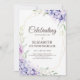 Este design é composto por Hydrangeas, que simbolizam a sincera gratidão. Os florais lilás são organizados junto com o falso quadro geométrico de ouro. O fundo tem um painel de madeira.