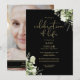 Convites Celebração da Foto de Verde da Vida Preto e Dourad