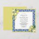 Uma elegante estrutura de azulejo azul é decorada em dois cantos com um arranjo de limão amarelo e flor branca. A borda está amarrada em amarelo Limoncello. Um quadro quadrado dourado cintilante define o dentro.