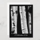 Este adorável convite para uma Celebração da Vida ou do Memorial é decorado com a nossa fotografia original da natureza branca e negra de troncos de árvores. Você pode modificar facilmente o nome e o texto na frente e no verso. Foto original de Alan Socolik. Todos os Direitos Reservados © 2023 Alan & Marcia Socolik