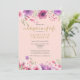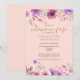 Um elegante convite de funeral personalizado de celebração da vida comemorando a memória, apresentando belas flores em um fundo rosa bege. Criado por Thisisnotme©