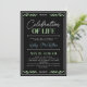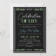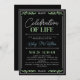 Celebração do convite de vida em preto com verde, um roteiro de assinatura azul e detalhes verdes sem foto.
