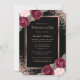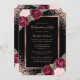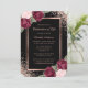 Celebração de fotos florais de ouro negro e rosa, elegante, de um convite à vida, com um quadro de ouro rosa, enfeitado com rosas e rosas cor-de-rosa e flores do hálito do bebê. Uma foto atrás.