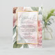 Celebração de fotos florais cor-de-rosa e elegante do convite à vida com detalhes do evento dentro a gold frame contra um fundo floral de peões cor-de-rosa. Uma foto atrás.