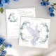 Galhos de oliveiras pintados à mão em torno de uma pomba de paz em voo decoram esta celebração única, delicada e amorosa do convite à vida