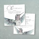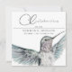 Um beija-flor pintado à mão com detalhes impressionantes e sutis tons de aqua e rosa decora esta celebração única, delicada e amorosa do convite à vida em preto clássico e branco