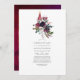 "Cheers to Love floral boho Celebration of Life" (Comemoração floral da vida) com sotaques de bordo, violeta, vinho tinto de ameixa, roxo escuro e rosa-pincel.