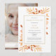 Um convite de funeral elegante e personalizado de celebração da vida em memória, apresentando folhagem botânica em aquarela terracota. Criado por Thisisnotme©
