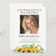 Convide amigos e família para se juntarem a vocês para celebrar a maravilhosa vida de seu amado com este simples anúncio do serviço de fotografia com um belo buquê de girassol.
