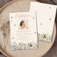 Esta é uma elegante e caprichosa carta de convite ao funeral moderno para celebrar a vida do seu amado. A design apresenta uma bela fonte de caligrafia e lindas flores silvestres em cor-de-rosa pastel, roxo, azul, amarelos e vermelhos ferozes ou terracota, além de borboletas delicadas. Esta celebração do convite à vida pode ser facilmente personalizada com a sua própria fotografia para criar um tributo especial para o funeral, memorial ou celebração da vida do seu ente querido usando o modelo fornecido. Entre em contato com o designer para obter informações sobre este design ou sobre produtos correspondentes.