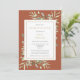 Um convite de funeral elegante e personalizado de celebração da vida com folhagem botânica em aquarela sobre um fundo de terracota. Criado por Thisisnotme©
