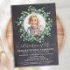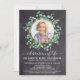 Funeral Russo Eucalyptus Memorial / Celebração Do Convite À Vida. Estes convites para funeral de simpatia apresentam uma foto em um design de eucalipto verde na ardósia do quadro chalkboard. Personalize esta celebração do convite para o funeral de vida com as fotos, nomes e datas de seus entes queridos, detalhes do evento. COPYRIGHT © 2021 Judy Burrows, Black Dog Art - Todos Os Direitos Reservados. Celebração Do Quadro De Fotos Eucalyptus Do Convite À Vida