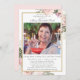 A celebração elegante de um convite para a vida apresenta dois arranjos florais rosa cor-de-rosa que decoram uma estrutura dourada. O nome da pessoa morta está escrito em um texto tradicional de texto acima de sua foto. Os detalhes da Celebração de uma Vida estão abaixo. Todo o texto pode ser facilmente editado para criar uma lembrança pessoal.