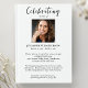 Honre seu ente querido com este belo convite de celebração da vida. A frente apresenta uma foto e todos os detalhes da sua celebração. O verso oferece espaço para outra foto e poema ou escritura (ou excluir). O modelo é muito fácil de usar e alterar - crie um convite único, clássico e que será apreciado para sempre.