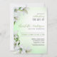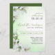 Celebração da vida Convite Funeral Floral. Convite para memória personalizada floral elegante e delicada. Lírios brancos de aquarela em um fundo verde-claro. O texto acrescenta um belo texto. Lírios Brancos é uma flor funerária clássica, e simboliza Pureza e Inocência. Convide e reúna-se para honrar a memória de seus entes queridos, refletir sobre o amor, alegria e luz que eles trouxeram para suas vidas. Lado de trás verde.