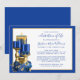 Esta elegante celebração do convite à vida apresenta três velas reais, azuis e douradas, com sotaques florais em um quadro de ouro e branco. Fácil de personalizar com seu texto pessoal clicando em "Personalizar".