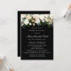 Um arranjo elegante de rosas brancas está aninhado em folhas verdes escuras e douradas. Pop de texto branco sobre fundo preto. O nome da pessoa morta está escrito em um texto tradicional. Todo o texto pode ser facilmente editado para criar uma lembrança pessoal.