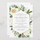 A celebração elegante de um convite à vida apresenta grandes flores brancas aninhadas em uma folhagem botânica moderna verde-sage. O nome da pessoa morta está escrito em um texto tradicional. Todo o texto pode ser facilmente editado para criar uma lembrança pessoal.
