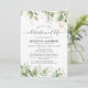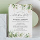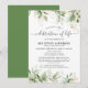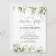 O convite personalizado de memorial fúnebre é uma forma ideal de homenagear o falecido e celebrar sua vida de maneira respeitosa e digna. Com elegantes folhas de eucalipto botânico verde aquarela, detalhes florais dourados e um modelo de celebração da vida fácil de personalizar.