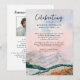 Honre seu ente querido com este lindo convite de celebração da vida. A frente apresenta uma cena de Montanha e Campo pintada à mão em aquarela com detalhes personalizados da sua celebração. O verso oferece espaço para uma foto e poema ou escritura (ou excluir). O modelo é muito fácil de usar e alterar - crie um convite único e lindo que será guardado para sempre.