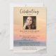 Honre o seu amado com esta bela celebração do convite à vida. A frente apresenta uma cena de água por pôr do sol, sua foto enquadrada por uma falsa borda dourada e detalhes de sua celebração. (Mude facilmente a foto de fundo para uma de suas.) A parte traseira oferece espaço para outra foto e poema ou script (ou apagar). O modelo é muito fácil de usar e mudar - crie um convite que é único, clássico e que será apreciado para sempre.