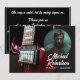 Uma bela guitarra vermelha está sobre um fundo preto que é uma design perfeita para um guitarrista. Uma citação de Irvin Berling está incluída: "A canção está terminada, mas a melodia continua..."