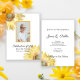 Convide os convidados a lembrarem-se do seu amado após a sua passagem com a elegante Celebração Amarelo dos Girassóis Amarelos de Aquarela do Convite à Vida. Este convite à homenagem fúnebre, personalizada e elegante, ilustra uma fotografia floral pintada por uma cor d'água, de flores de girassol amarelas, enfeitando os cantos com um fundo branco brilhante. Personalize-o com uma fotografia, o nome do falecido e as datas de nascimento e morte. Disponível como convite impresso para envio e/ou como download digital para fácil compartilhamento digital online.
