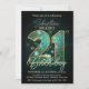Convites Celebração de 21 Anos em Azul Turquesa e Dourado E