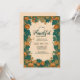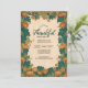 Reúna-se em gratidão com este design de Ação de Graças rico e detalhado que inclui abóboras ornamentados emolduradas por vinhas verdes que fluem e o ouro Art Nouveau floresce. A paleta de colheita quente e a elegante fronteira botânica captam o espírito da época da colheita — perfeita para jantas familiares aconchegantes, reuniões de amizade ou comemorações do outono. Personalize facilmente com seus próprios detalhes de eventos.