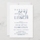 Lindo Convite de Almoço Pós-Casamento com Roteiro Azul-Marinho Moderno e Romântico (Almoço Felizes para Sempre). Isto é perfeito para a celebração do seu casamento pós-fuga e casamento. Adicione seus detalhes em cor, fonte / letra correspondente.