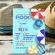 Este design de convite é perfeito para a sua próxima festa de piscina. Mergulhe nas festividades com um toque único e personalizado. O convite apresenta uma ilustração cativante de uma piscina espumante com uma tonalidade de água turquesa. Ao redor da piscina estão vibrantes guarda-chuvas de praia de dois tons, criando uma atmosfera alegre e viva. Uma toalha listrada azul e branca adiciona um elemento na moda, enquanto um anel natação azul adiciona um toque lúdico. O que distingue este convite é o seu texto totalmente personalizável. Você tem a liberdade de personalizar todos os aspectos do convite, garantindo que ele reflita perfeitamente os detalhes do seu partido e captura o entusiasmo de sua celebração.