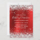 Crie seu próprio convite para comemoração de aniversário para ela. O plano de fundo apresenta um fundo de película vermelho-vivo falso e brilhante de satírico vermelho-vivo com brilho brilhante brilhante brilhante falso. Todo o brilho prateado e branco e brilha nesta impressão de arte digital como uma foto. As cores principais são rubi, vermelho, prata, cinza, preto e branco. Personalize a cor ou estilos da fonte do convite.