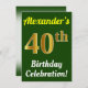 Convites Celebração de aniversário de 40 anos Dourada verde