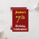 Este design convite de aniversário apresenta uma mensagem como "Celebração de Aniversário 7 de Jessica!", onde o nome pode ser personalizado, e onde o número "7" tem uma aparência falsa de ouro. Ele também apresenta um fundo de cor vermelha. Os detalhes do evento no verso podem ser personalizados. Poderia ser usado para convidar pessoas para a festa ou festa de aniversário de sétimo aniversário de alguém. [~Z0000120]