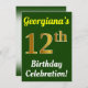 Convites Celebração de aniversário do 12 Dourado Verde, Fau