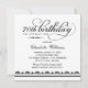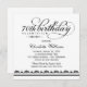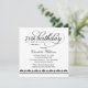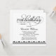 O Elegante e o convite de aniversário chic milestone apresenta um cabeçalho de script de caligrafia com texto personalizado e detalhes de borda damask/striped. Design quadrado. Esquema de cores preto e branco.
