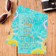 Comemore seu aniversário de verão em estilo com este convite feito por medida. A design mostra uma vibrante piscina de natação criada com aquarelas artísticas. Mergulhe nas festividades quando você vê a vista refrescante das pernas de um homem balançando de uma legal faixa. Completado com uma alegre aliança amarela e um vivo colchão de piscina multicolorido, este convite realmente captura a essência da diversão do verão. O melhor de tudo é que o texto pode ser adaptado às suas preferências, fazer-o exclusivamente seu.