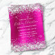 Crie seu próprio convite para comemoração de aniversário para ela. Personalize a cor ou estilos da fonte do convite. O plano de fundo apresenta uma folha de fundo de folha de papel cor-de-rosa-quente com estilo faux satin com brilho brilho brilhante brilhante brilhante falso. Todo o brilho prateado e branco e brilha nesta impressão de arte digital como uma foto. As cores principais são rosa quente, fúcsia, magenta, prata, cinza, preto e branco.