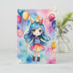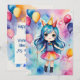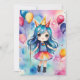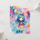 Celebre o aniversário de alguém especial com este encantador "Cartão de Celebração de Aniversário Mágico". Apresentando uma ilustração adorável de uma garota alegre com cabelo azul vibrante, vestida com uma roupa colorida, e rodeada por balões festivos, esta carta é perfeita para espalhar alegria e entusiasmo. O design e fundo brilhante, inspirado em aquarela, acrescentam um toque de magia a qualquer celebração de aniversário. Personalize o dentro com sua própria mensagem sincera para tornar o dia mais especial.