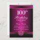 Comece a organizar sua celebração com este elegante convite de aniversário 100º preto e rosa.