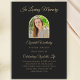 Esta maravilhosa celebração da vida, convidada, mostra a fotografia do seu ente querido como o centro da atenção cercado por um quadro de ouro com um fundo preto. O design tem as palavras, "In Loving Memory" no topo de um roteiro elegante. Você pode personalizar a design inteira para uma impressionante celebração personalizada de um convite de serviço de memorial de vida. Simpatia por direitos autorais Obrigado por Kathy Henis