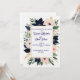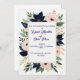 Esta design mostra uma bela fronteira floral que seria perfeita para um convite de casamento. Apresenta uma combinação elegante de flores azuis marinhos e rosas rosa-pinceladas dispostas em torno de uma estrutura retangular de ouro. A composição é complementada por folhas verdes sábias e galhos ou bagas delicados de ouro, criando uma estética sofisticada e romântica. A paleta colorida de azul marinho, rosa-pincel, verde-sábio e ouro cria uma combinação moderna, mas eterno, que é muito popular para casamentos contemporâneos. O espaço branco no centro é perfeito para o convite de casamento.