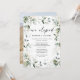 Este design elegante apresenta um buquê de aquarela suave de eucalipto, folhagens e enfeites dourados. Clique em Personalizar e no botão "Clique para personalizar ainda mais" para editar a cor da escrita do roteiro. Adicione uma foto no verso!